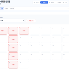 - 希望休入力: 職員を選択し、カレンダーをクリックして公休希望(赤色)を事前登録します。